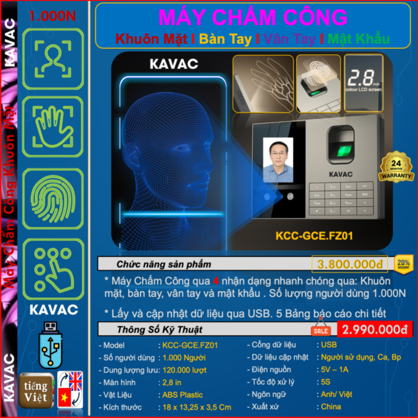 2.2 Máy Chấm Công Nhận Diện Đa Chức Năng, # KCC-GCE.FZ01