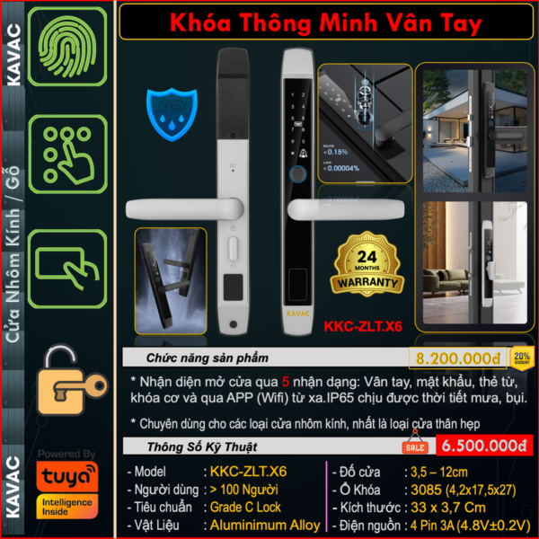 1.AA6-1 Khoá Cửa Kavac, Vân Tay/ IP65 – Model: KKC-LZT.X6