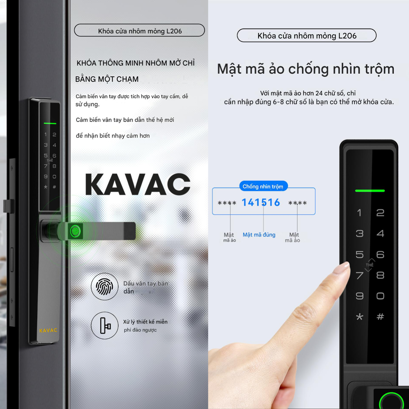 1.AA3-3 Khoá Cửa Kavac Vân Tay/ IP65 – Model: KKC2-L206F