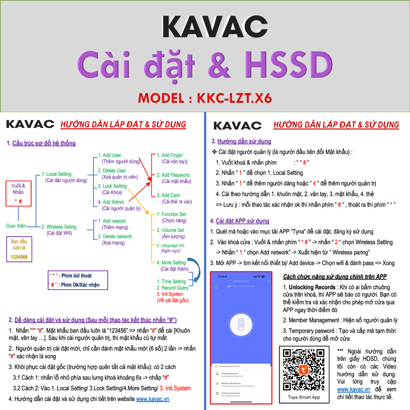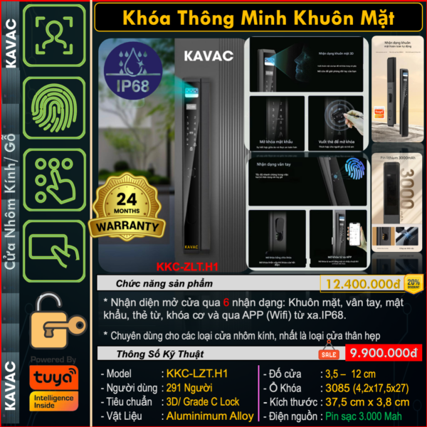 1.AA6-1 Khoá Cửa Kavac, Vân Tay/ IP65 – Model: KKC-LZT.X6
